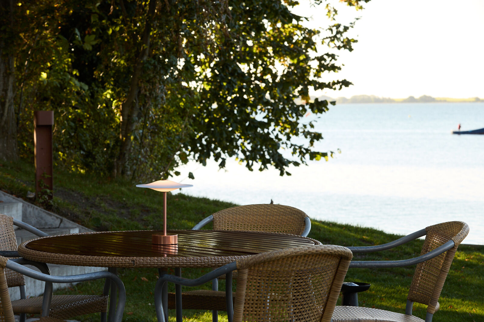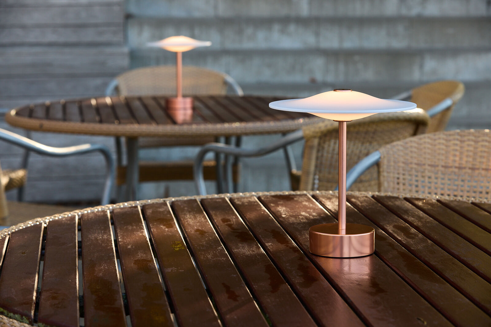 Piet Hein's classic Sinus pendant from 1967 has been reimagined as a portable lamp you can take anywhere. It emits a soft, glare-free light that can be adjusted in three levels with a simple touch on the top.
